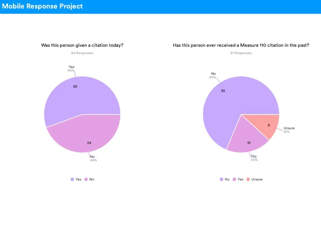 Pilot Event #1 included 4 Portland Police Bureau officers, eight troopers from Oregon State Police, and 16 outreach workers from MHAAO, Northwest Instituto Latino, and RecoveryWorks NW. There were 67 total law enforcement encounters, which resulted in eight citations. Seventeen of those approached by law enforcement agreed to speak with an outreach worker. Of those 17, four people received same-day connection to services.